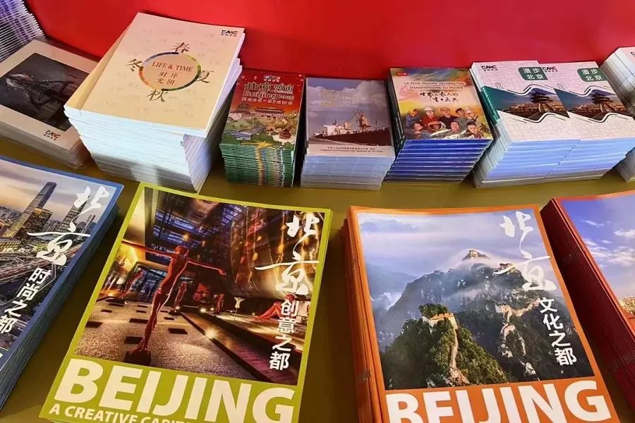 形象展示品展台上放置的北京宣传画册、文件夹、明信片等2000余种宣传品,负责这些宣传品印刷的公司,还要负责其的统筹配送及现场维护工作。