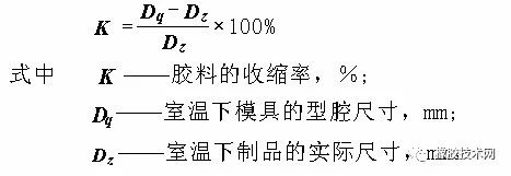 胶料收缩率是指制品硫化后从型腔内取出冷却到室温的尺寸与制品对应型腔尺寸之差同制品实际尺寸的百分比,即;