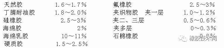 下面是部分工厂在设计橡胶模具时所取的橡胶收缩率,供设计时参考: