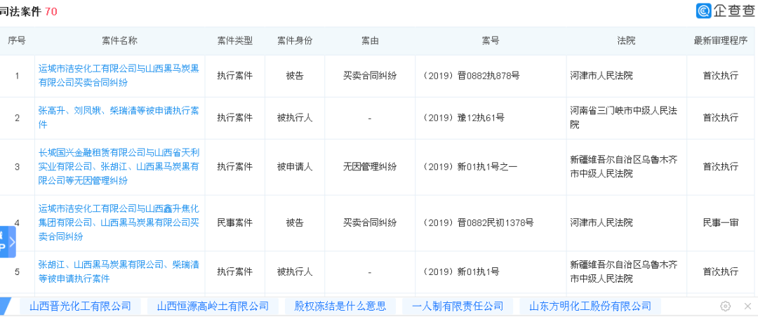 自2018年以来,山西黑马炭黑有限公司因债务纠纷,多次被列为失信被执行人。
