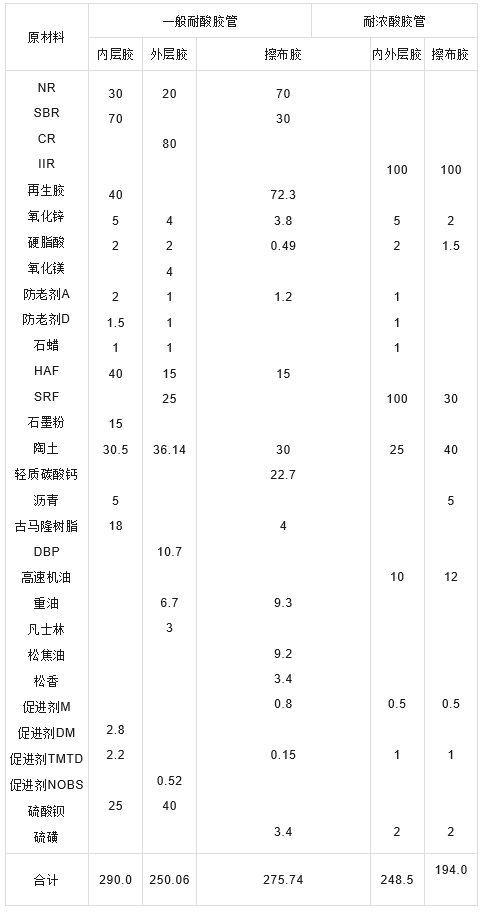胶管各部件胶料配方介绍